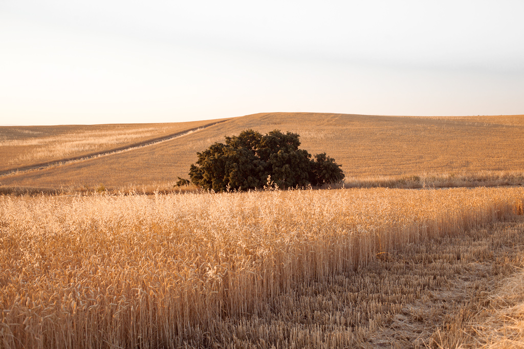 Oak tree in wheat field